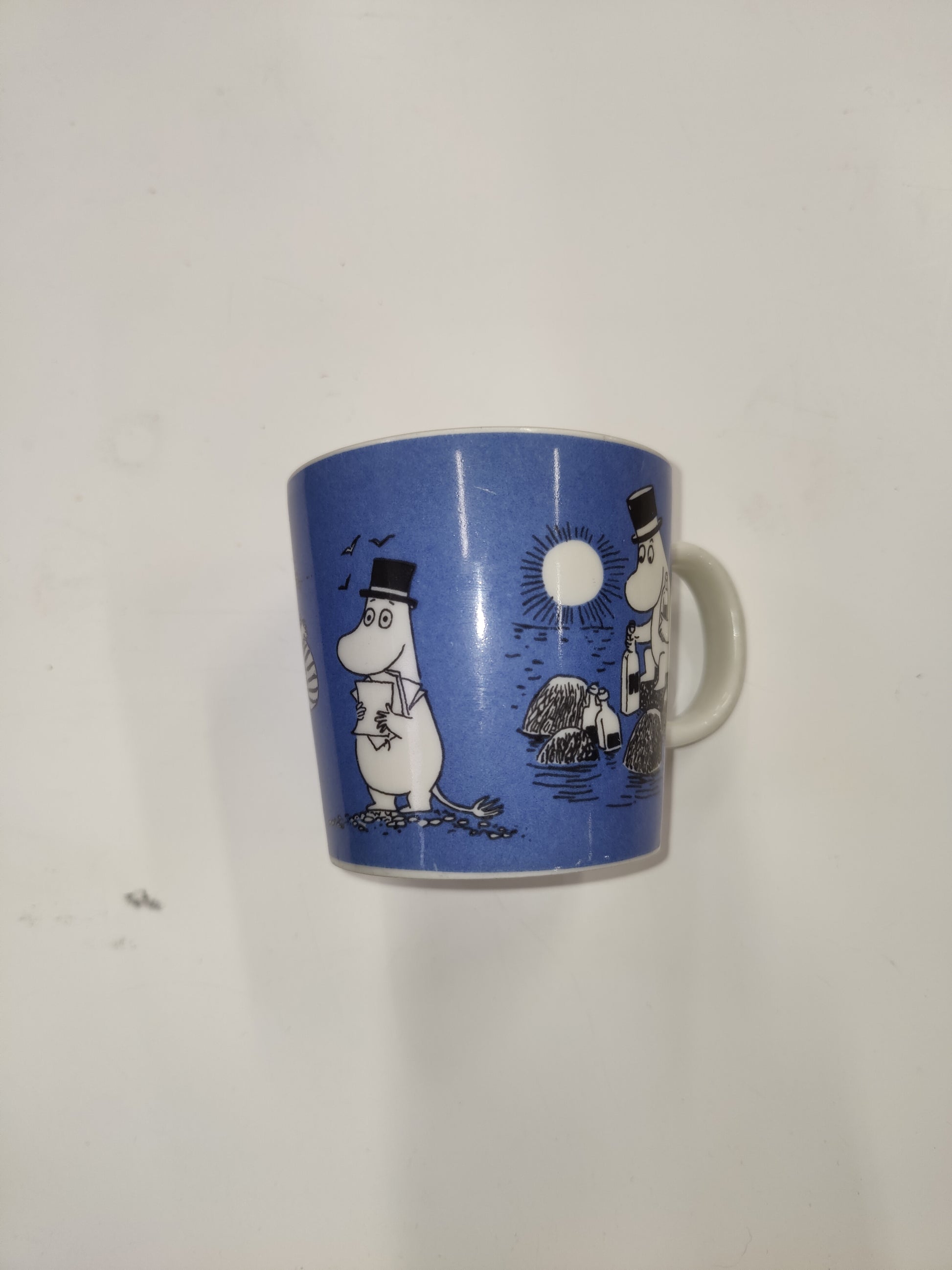 Tämä harvinainen ja haluttu keräilymuki on todellinen pala suomalaista design-historiaa. Tummansininen muki oli tuotannossa vain vuosina 1991–1999, ja se on yksi Arabian alkuperäisen neljän mukin sarjasta (sininen, keltainen, pinkki ja vihreä).